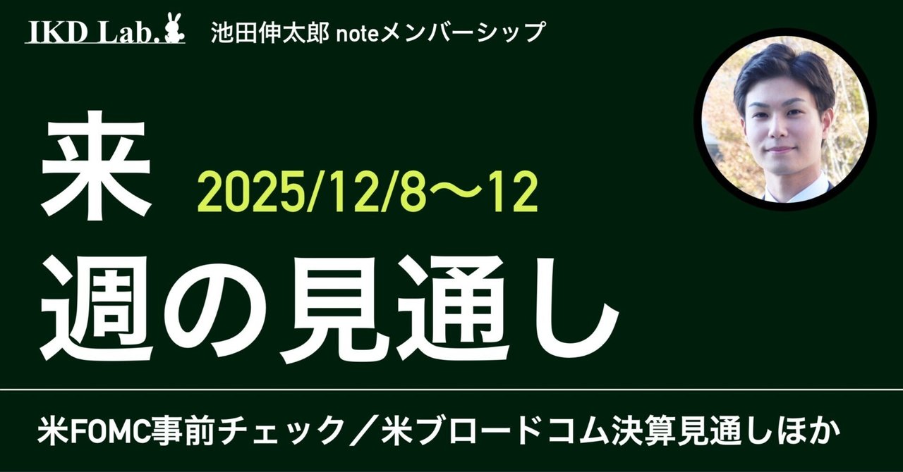 米FOMC事前チェック/ブロードコム決算見通しほか(来週のイベント見通し|25年12月8日〜12日)|池田伸太郎