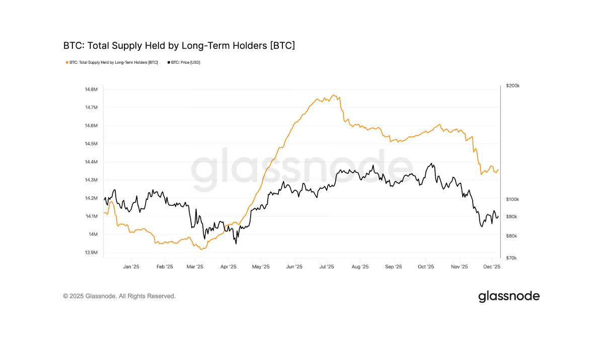 ビットコインLTH供給が3月以来の低水準、売り圧力が大幅後退 ・LTH供給は1433万BTCまで減少し、現物売りの圧力がほぼ一巡 ・BTCは8万ドルで底打ち→9万ドルへ反発 ・過去の急落局面と異なり、落ち着いた分配が続く新しい市場構造が示唆される coindeskjapan.com/328187/