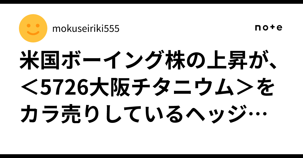 米国ボーイング株の上昇が、<5726大阪チタニウム>をカラ売りしているヘッジファンドにプレッシャーを与える。|mokuseiriki555
