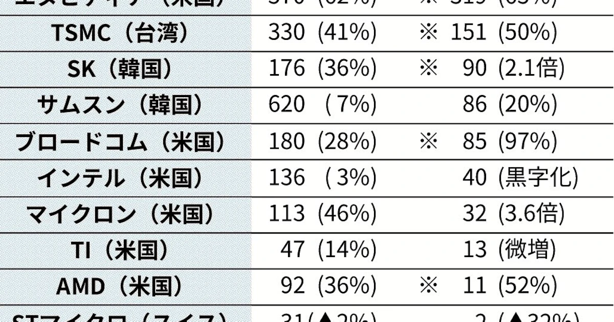 半導体、AI好調で最高益 世界主要11社、車載向けは苦戦 7~9月最終 - 日本経済新聞