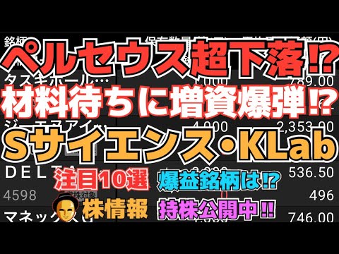 【株投資】『ペルセウス』増資発表超下落⁉,『エス・サイエンス』プラマイ0で調整中⁉… - 株価アルゴリズム