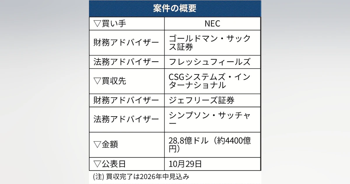 〈M&Aファイル〉NEC→CSGシステムズ・インター 担い手は元ゴールドマン - 日本経済新聞