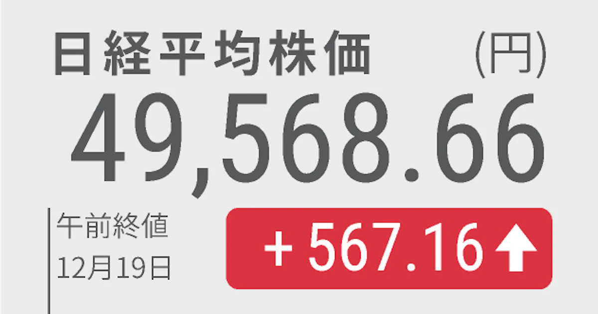 日経平均午前終値567円高、利上げ後にらみ買い戻し 年末高はや先取り - 日本経済新聞