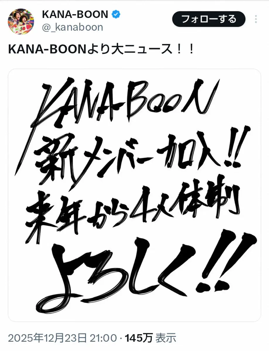 KANA-BOON 新メンバー加入を発表、来年1月1日から4人体制に 手書きメッセージを投稿 - スポニチ Sponichi Annex 芸能