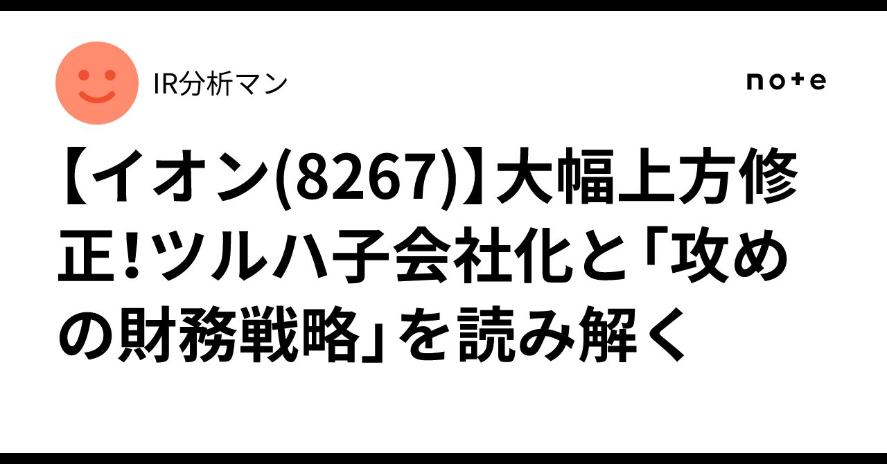 【イオン】大幅上方修正!ツルハ子会社化と「攻めの財務戦略」を読み解く分析マン note.com/ir_bunseki/n/n…