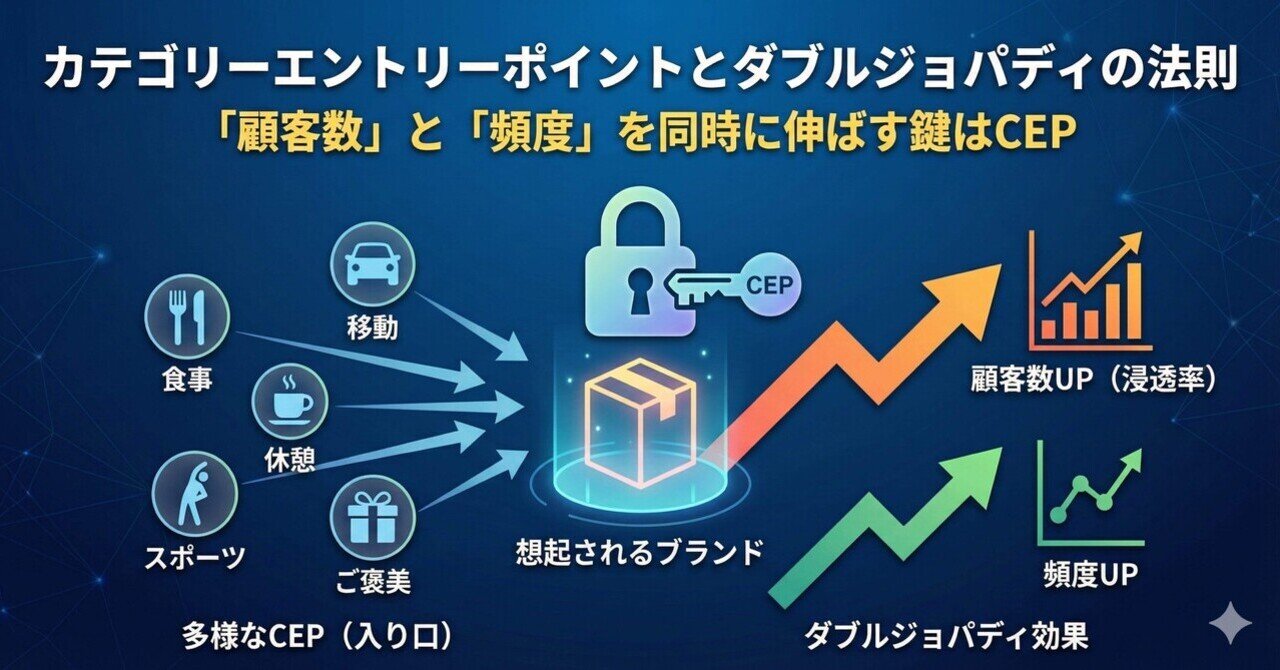 カテゴリーエントリーポイントとダブルジョパディの法則——「顧客数も、購入頻度も」伸ばす鍵は、CEPにある。|決算分析×マーケ×キャリア
