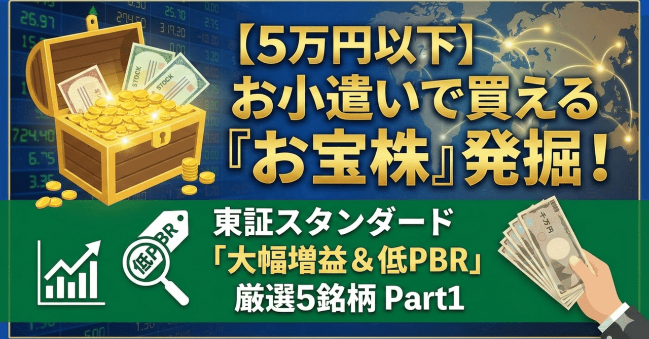 【5万円以下】お小遣いで買える「お宝株」発掘!東証スタンダード「大幅増益&低PBR」厳選5銘柄 Part1|【投資家】10万円株の分析ノート【損切りしない投資論】