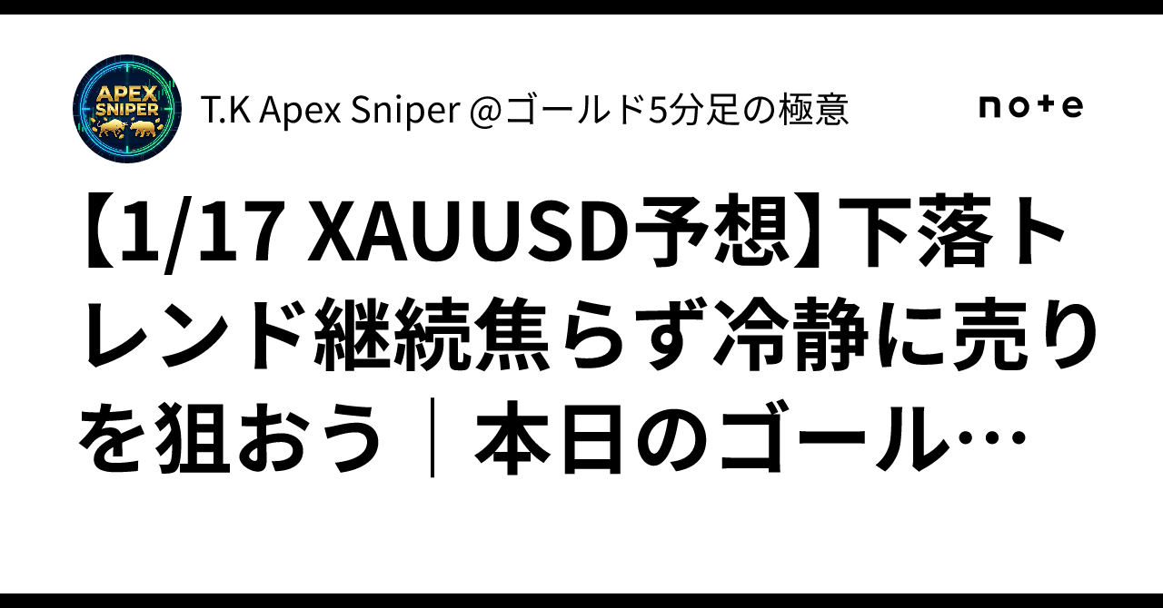 【1/17 XAUUSD予想】下落トレンド継続⁉️焦らず冷静に売りを狙おう??|本日のゴールド相場攻略法?✨|T.K Apex Sniper @ゴールド5分足の極意
