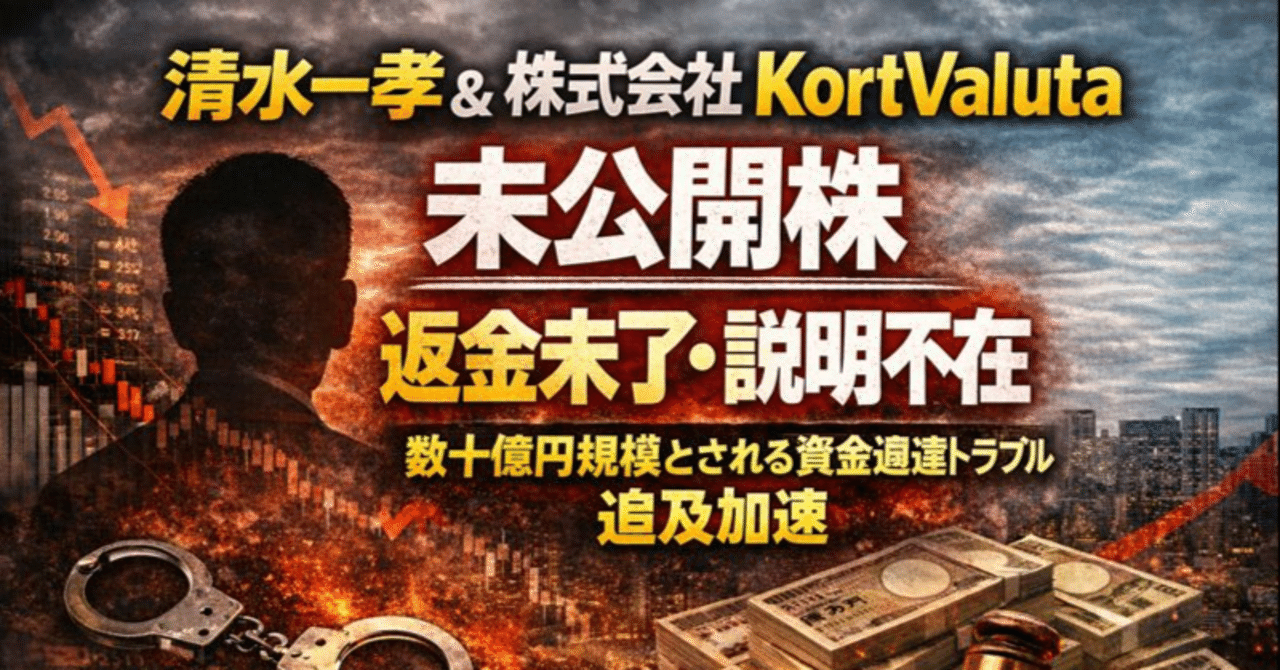 【調査記録・最終完成版】清水一孝・株式会社KortValutaの未公開株問題を含む大規模資金調達トラブルの全体像 ― 返金未了・説明不在が反復する構造と、「信頼」が悪用される時代背景 ―|kortvaluta?