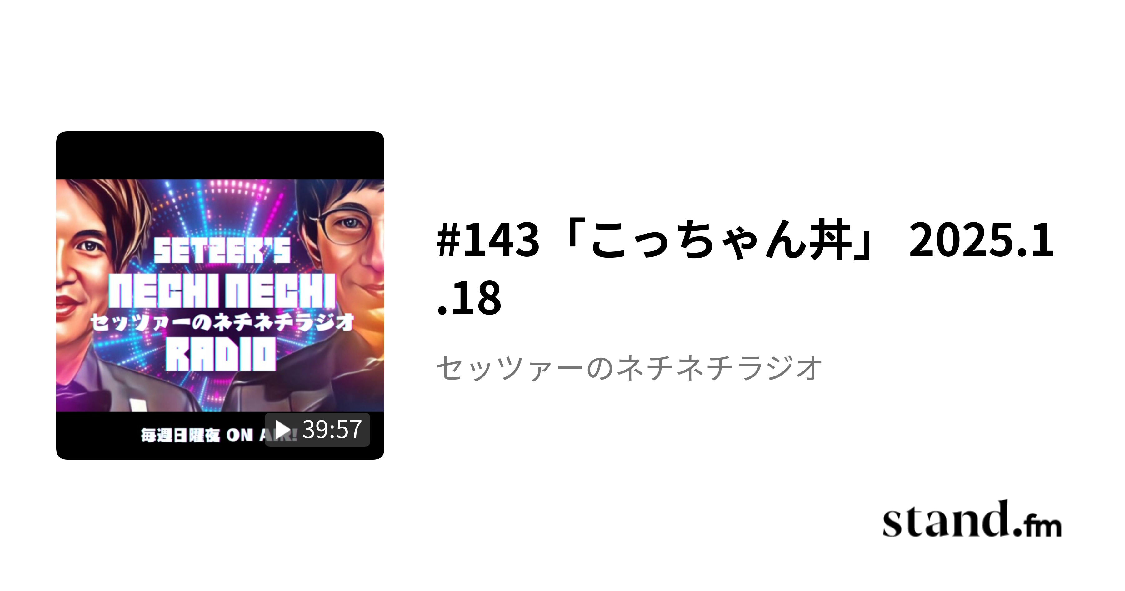 #143「こっちゃん丼」 2025.1.18 - セッツァーのネチネチラジオ | stand.fm