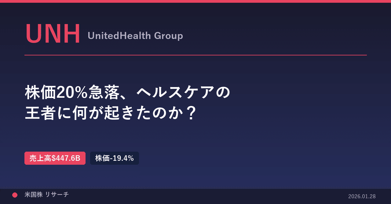【米国株 決算速報!】 UNH : 株価20%急落、ヘルスケアの王者に何が起きたのか?|うぶさんの米国株