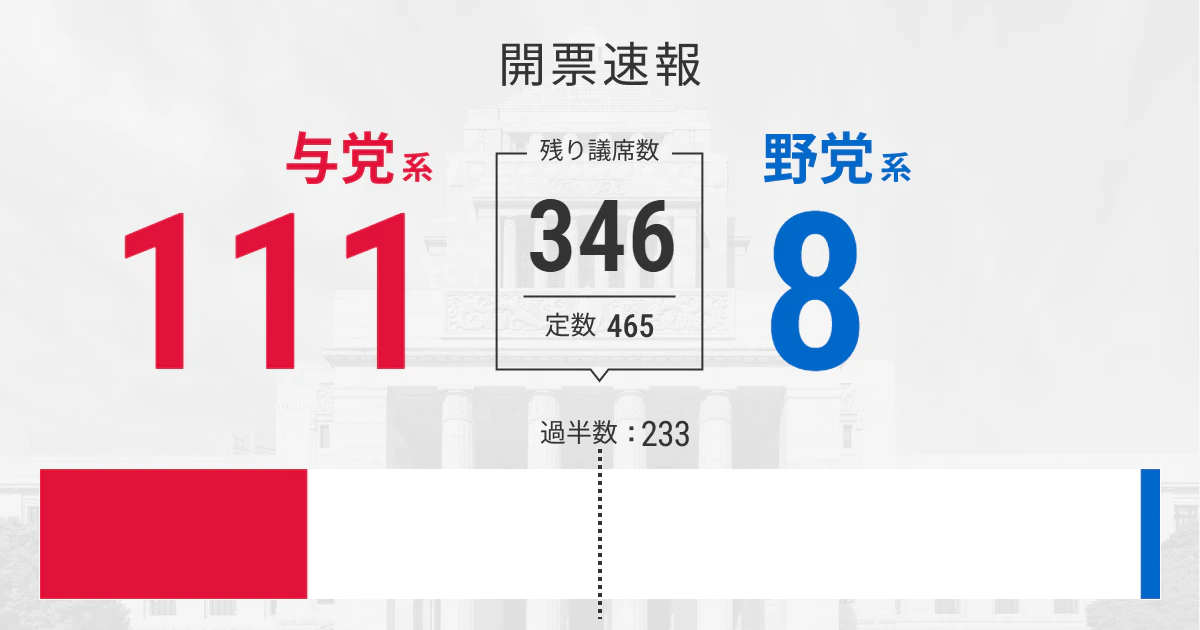 【衆議院選挙速報】高市自民が単独過半数の勢い、中道改革連合や参政党は 選挙区・比例代表の結果 - 日本経済新聞