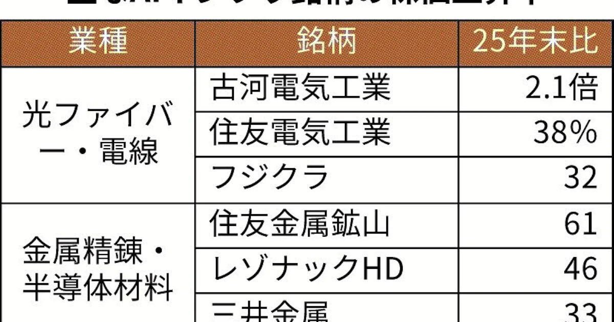 銅・光ファイバー・半導体材料… AIインフラにマネー 日経平均最高値5万7650円 - 日本経済新聞