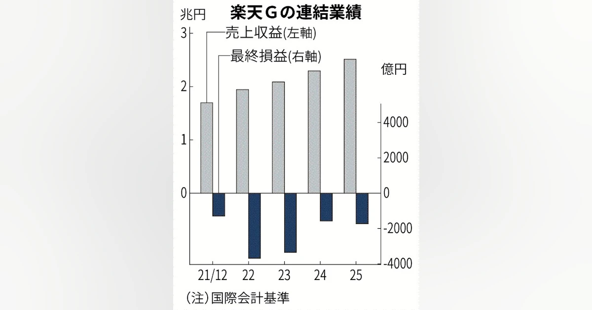 楽天G、7年連続 1,778億円赤字日本経済新聞 ・26年12月期の業績予想は開示していないが「営業利益は大幅な増益を目指す」とした。事前の市場予想平均の営業利益は1,471億円となっている。本業の収益力が改善する一方、発行済みの社債の利払いなどに関わる費用が重荷となる nikkei.com/article/DGKKZO…