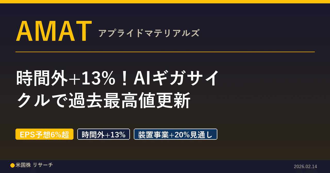 【米国株 決算速報!】 AMAT : 時間外+13%!AIギガサイクルで過去最高値更新|うぶさんの米国株