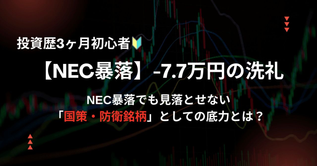 【NEC株価急落】含み損7.7万円…。投資歴3ヶ月の初心者が「落ちるナイフ」を掴んで大怪我!?どうする???|ピヨの投資ログ【号外】|ピヨ@個別株投資?