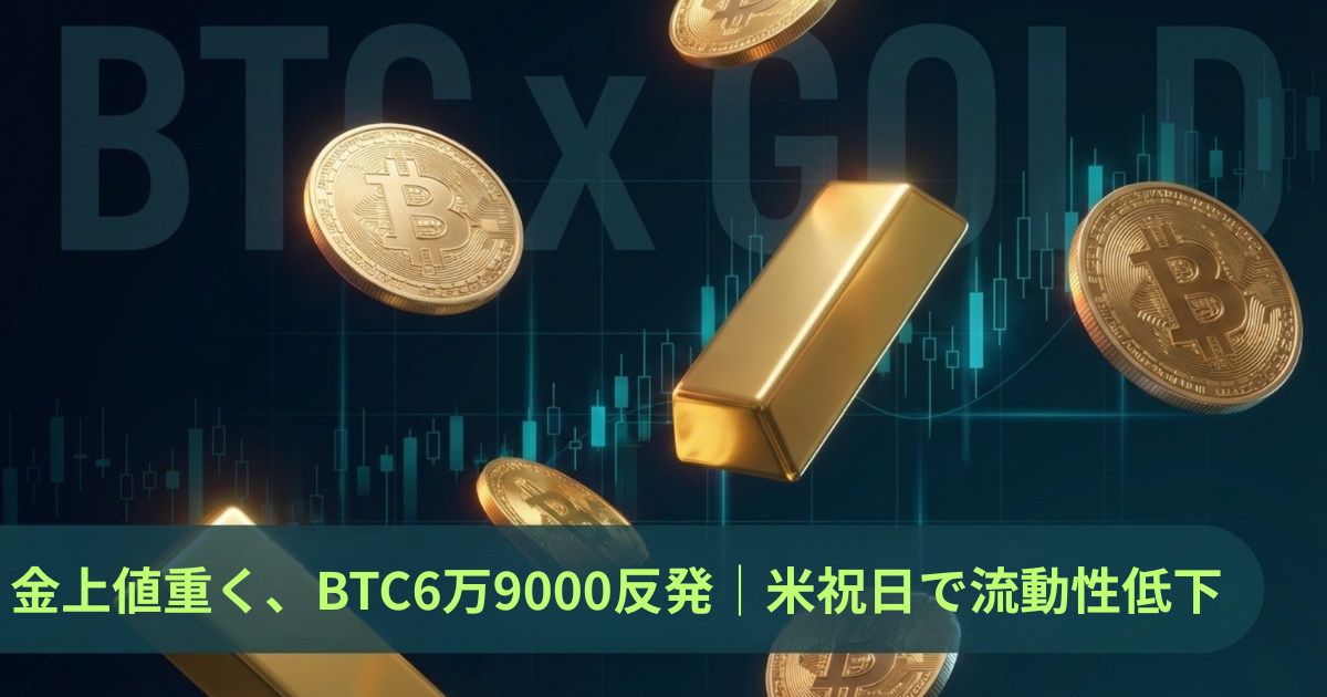 金4950ドル台で上値重く、ビットコイン6万9000ドル台へ反発米祝日で流動性低下 coinotaku.com/news/articles/…