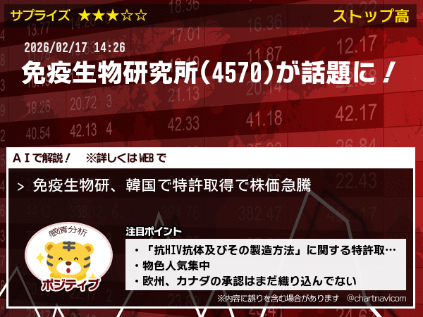 免疫生物研、韓国で特許取得で株価急騰|チャートなび