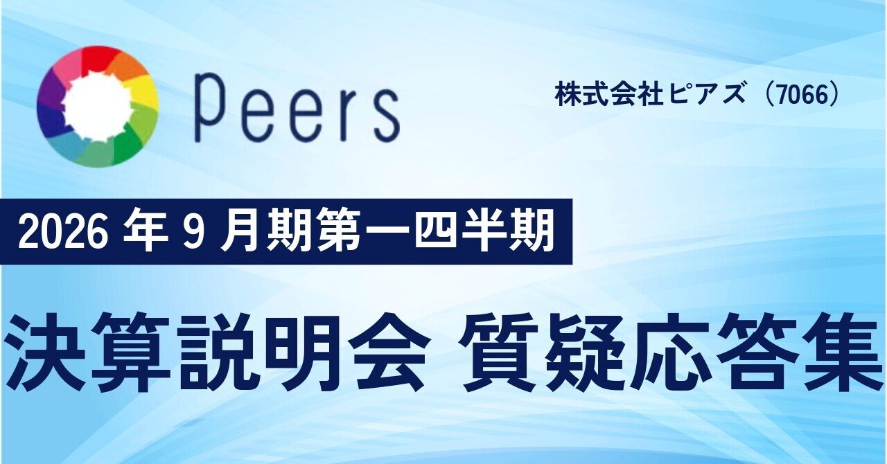 2026年9月期 第一四半期 決算説明会の書き起こしをnoteにアップしました。 ▼下記からご覧いただけます note.com/peers_ir7066/n…