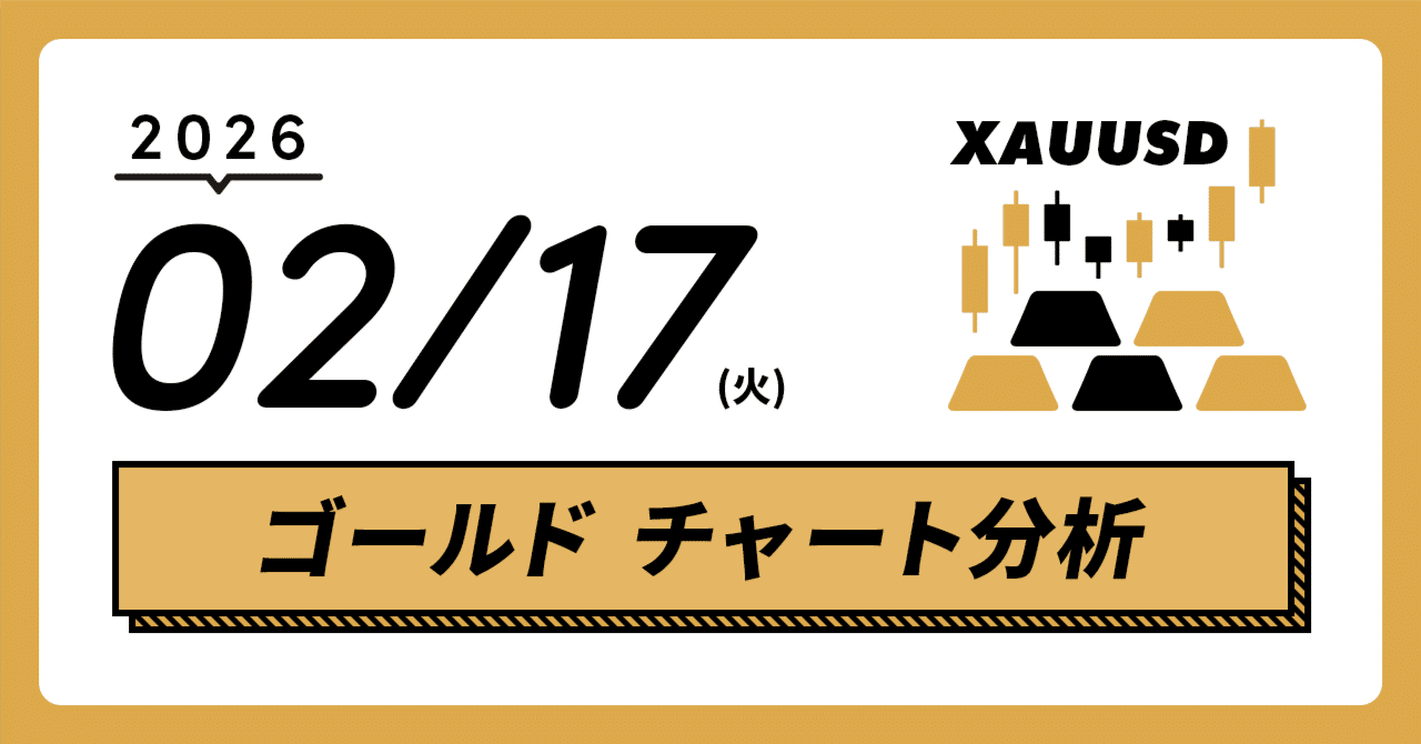 【2/17(火) ゴールド / XAUUSDチャート分析】14時台の急落で先週最安値を割り込む展開に。祝日明けNYのトレンド把握が重要な局面。|Wonder