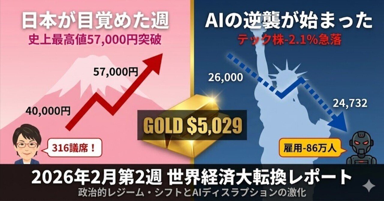 【2026年2月第2週】世界経済の"主役交代"が始まった―日本株史上最高値、米国テック株急落、そして金$5,000突破の真相|Mr. R@総資産1億のTattoo自由人