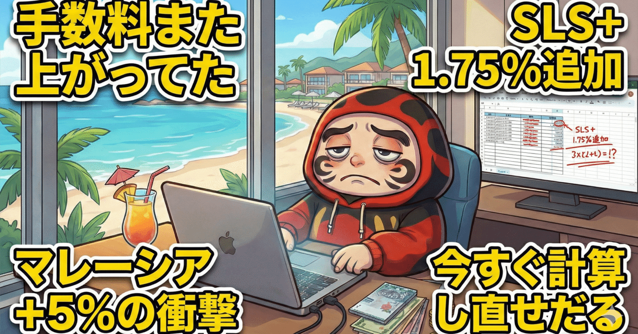 Shopeeの手数料、こっそり増えてたって気づいてた? SLS+で+1.75%、マレーシアは+5%で合計20%超えも出てきてるだる。 正直、計算し直すのはだるいけど、赤字のまま続ける方がもっとだるだる。 詳しくはnoteに書いたから読んでくれだる👇