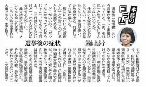 東京新聞コラムの「高市鬱」表現に批判拡大 Xで鬱病侮辱と反発相次ぐ 左翼メディアの暴走とダブルスタンダード : NEWS GEISPO