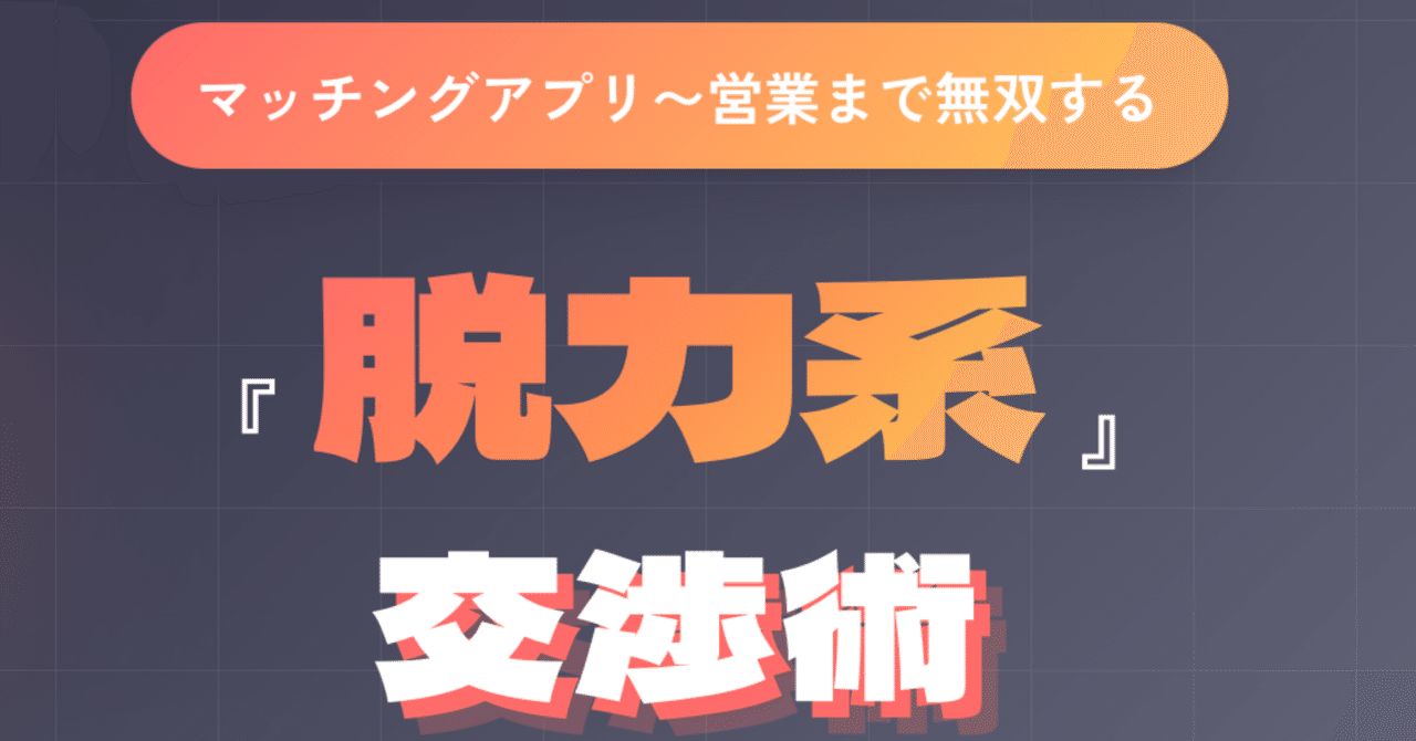 【保存版】マッチングアプリから営業まで無双する『脱力系』交渉術 ??|niko