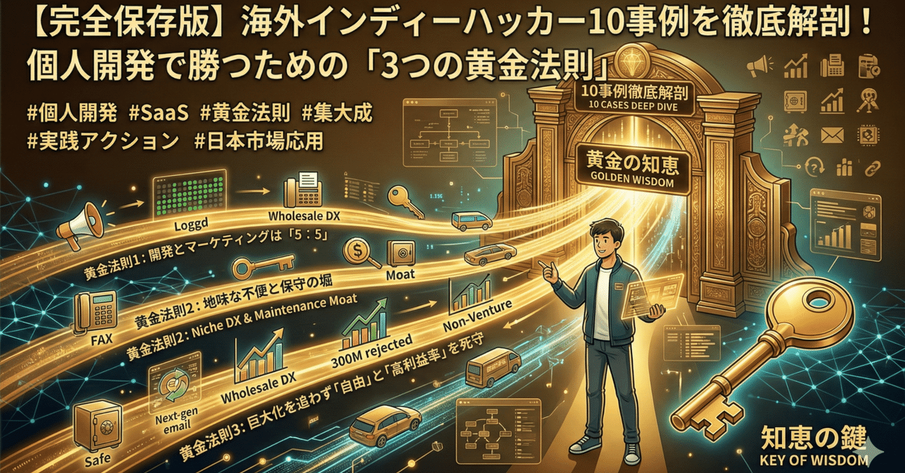 【完全保存版】海外インディーハッカー10事例を徹底解剖!個人開発で勝つための「3つの黄金法則」|レンタカー@海外インディーハッカー通信