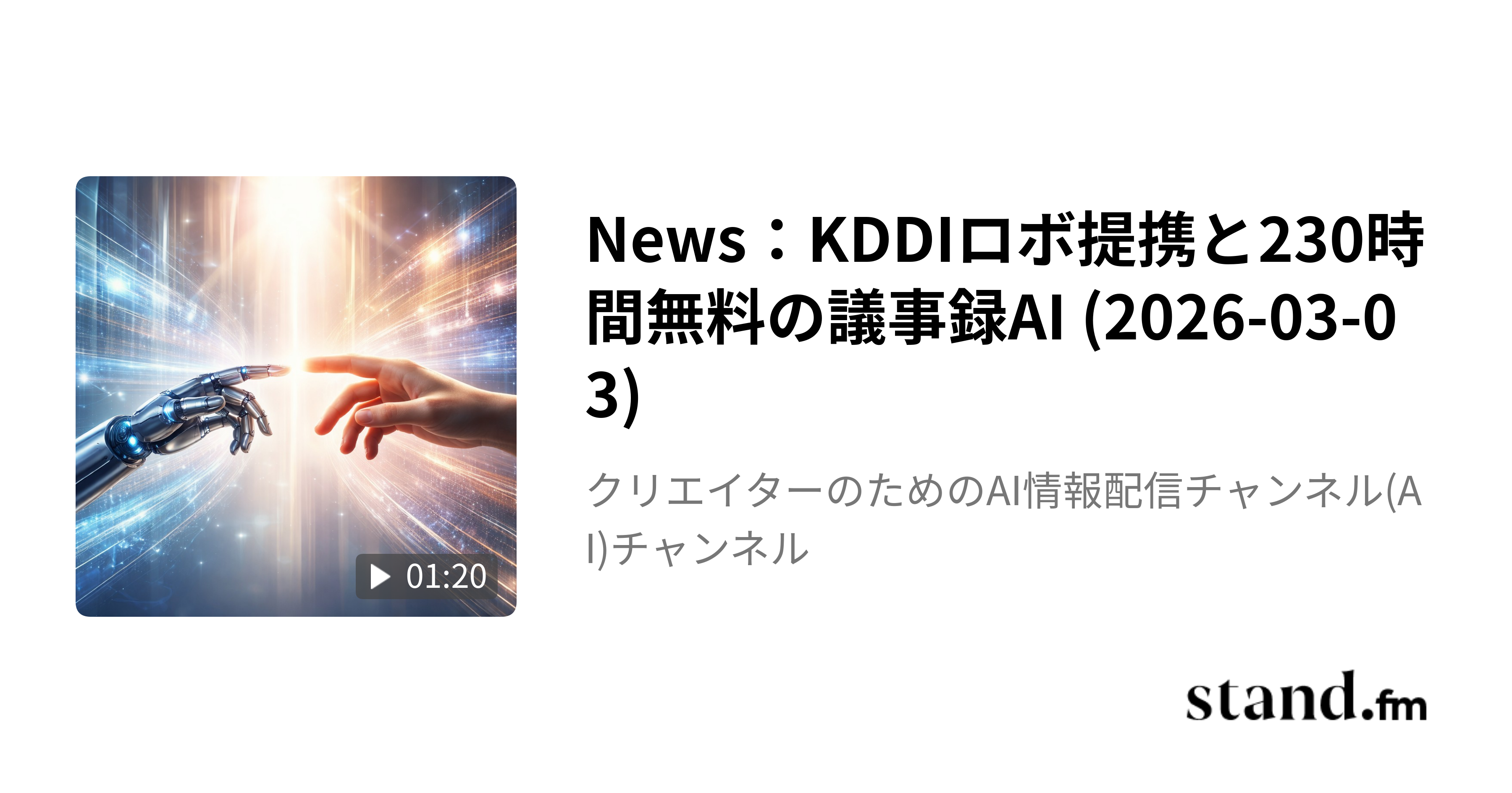 News:KDDIロボ提携と230時間無料の議事録AI (2026-03-03) - クリエイターのためのAI情報配信チャンネル(AI)チャンネル | stand.fm