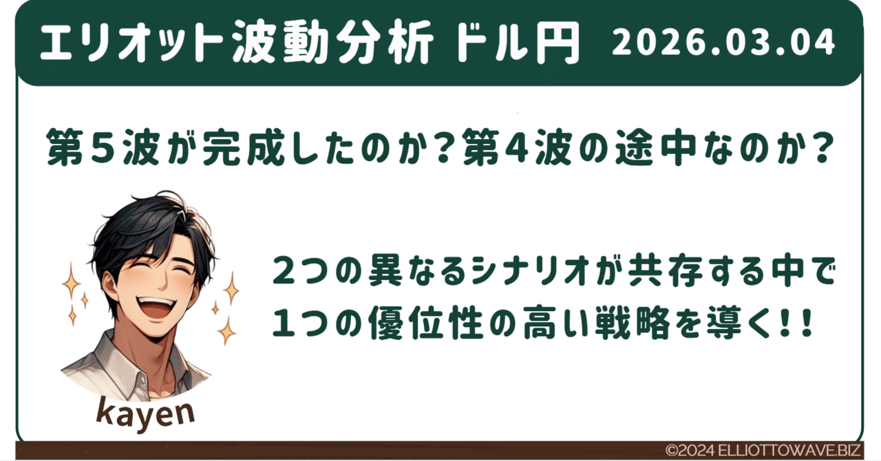 ドル円 エリオット波動分析 2026年3月3日|kayen