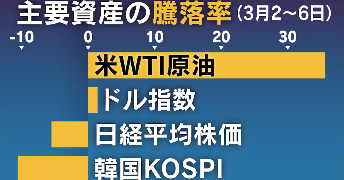 日韓株急落、原油高騰で中東依存のもろさ露呈 AI銘柄にも調整売りの波 イラン攻撃1週間 - 日本経済新聞