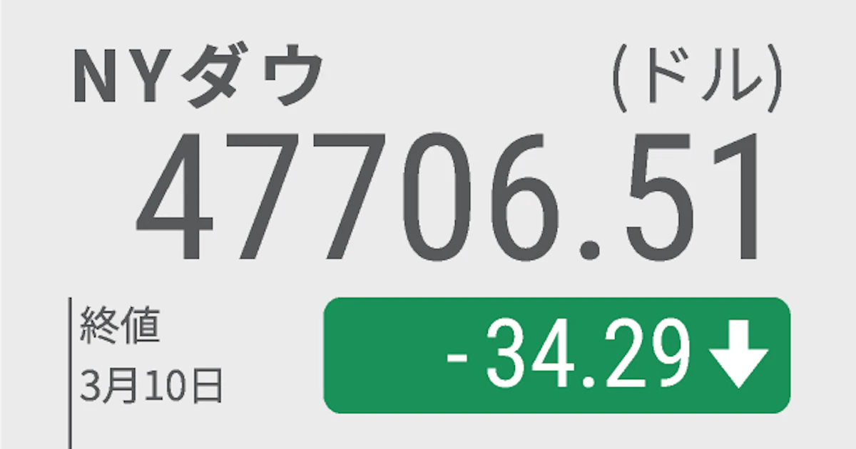 NYダウ、反落し34ドル安 ホルムズ海峡巡り不透明感 - 日本経済新聞
