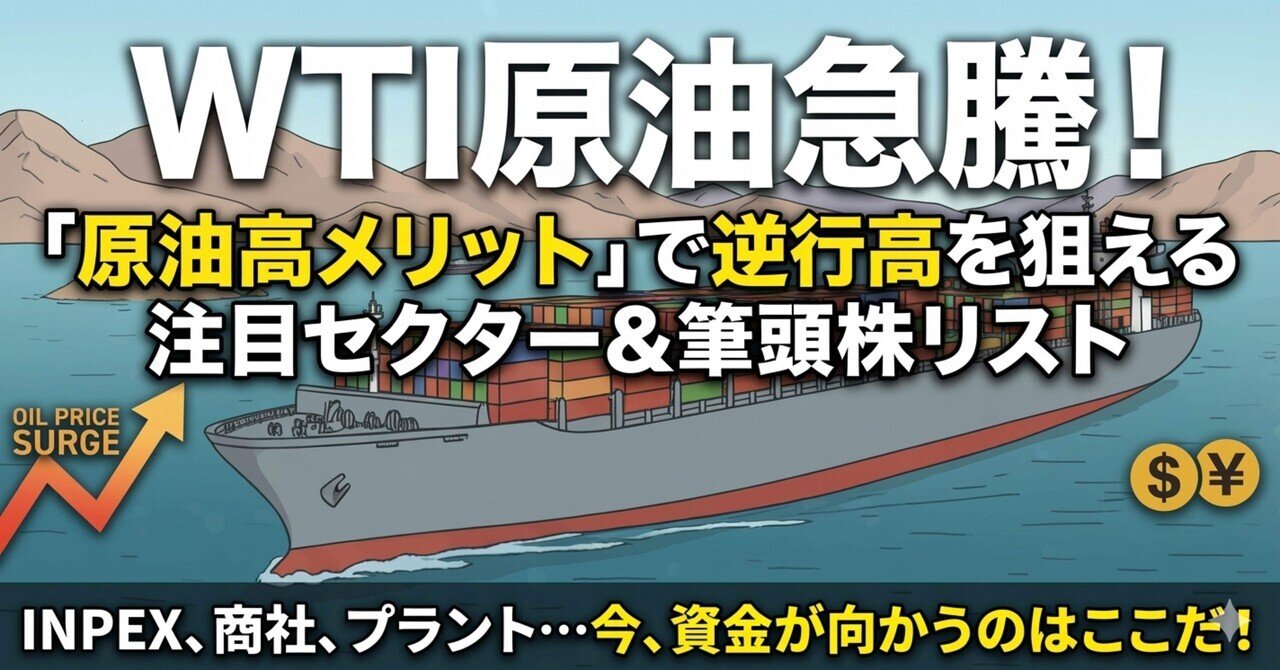 WTI原油急騰!全体相場が軟調な中、資金が向かう「原油高メリット銘柄」をnoteにまとめました。INPEX、商社、プラントなど、逆行高を狙える注目セクターと筆頭株リストを整理しています。投資戦略の参考にぜひ!👇 note.com/kirin_investor…