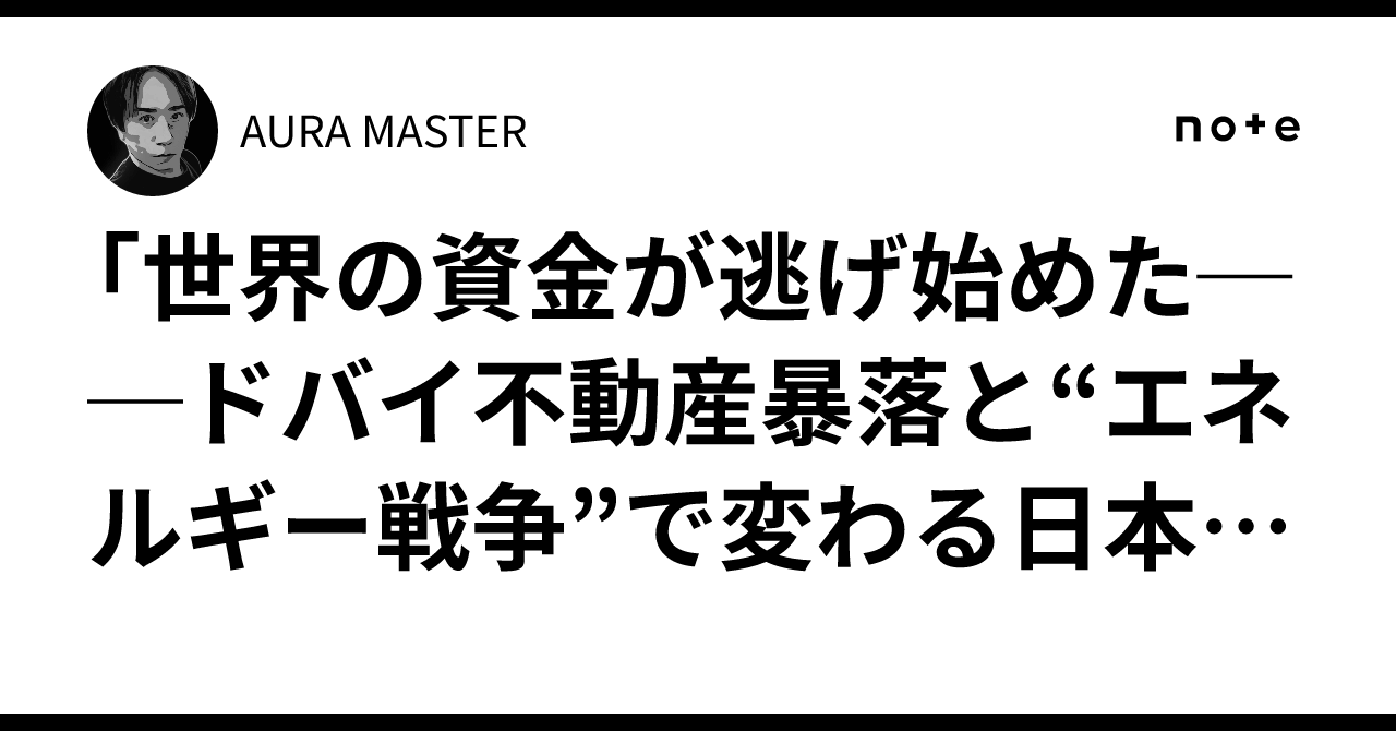 今、世界で起きていること。 ・ドバイ不動産暴落 ・原油高騰 ・円安加速 一見バラバラのニュースですが 実は全部つながっています。 キーワードは 「エネルギー戦争」 日本経済と 資産に何が起きるのか? 投資家目線で解説しました👇 note.com/auramaster/n/n…