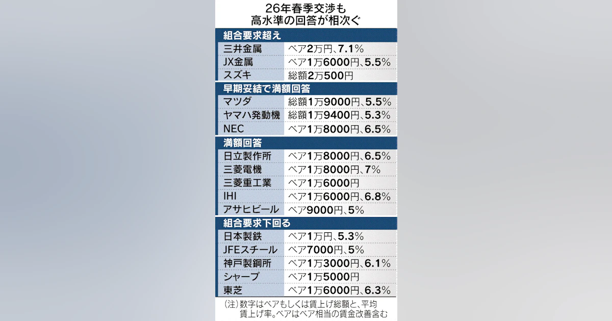 製造業、6割が満額回答 春季労使交渉 原油高、実質賃金増の重荷 中小企業に影響大きく - 日本経済新聞