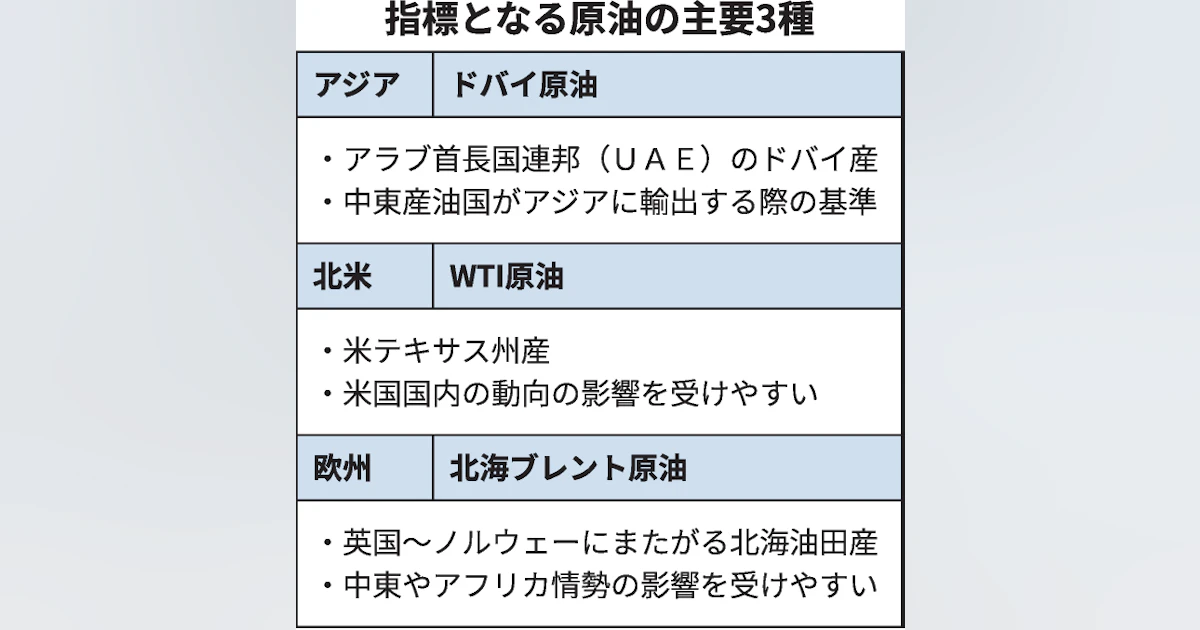 原油の国際指標とは WTI・北海ブレント・ドバイ…地域ごとの需給反映 - 日本経済新聞