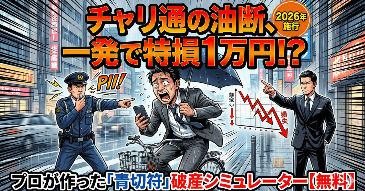 【2026年問題】そのチャリ通勤、我が家のB/Sを破壊してへんか?〜コンプライアンス時代を生き抜く「青切符」リスク診断ツール〜|泥臭いAI活用 有限会社 吹田総業