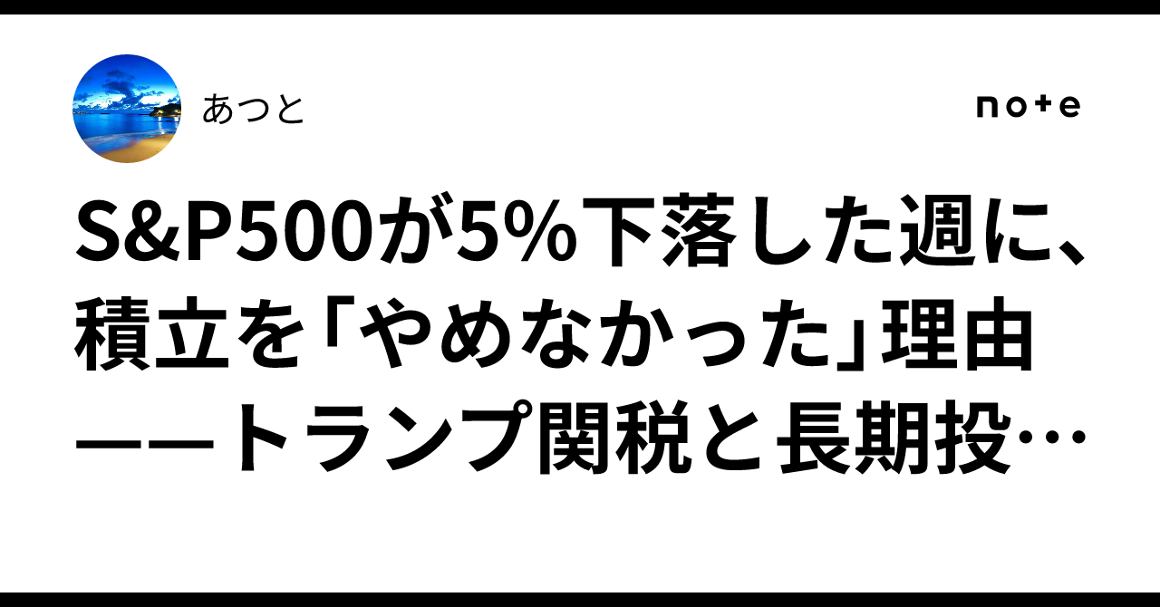 S&P500が5%下落した今週、積立を「やめなかった」理由。トランプ関税・CAPE40越え・含み損の夜——それでも続ける根拠を書いた。note.com/atsuto_22/n/n0…