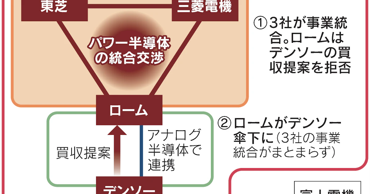 デンソーが三菱東芝ローム3社連合を纏めて買収する可能性あり。 デンソーのローム買収額は1.3兆円だが、3社連合なら世界シェアから単純計算し5兆円。富士電機&デンソーでも厳しそう。 ▶日本経済新聞 nikkei.com/article/DGXZQO…