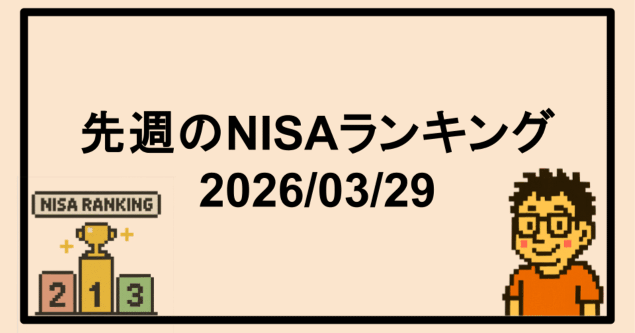 先週のNISAランキング|2026年03月29日|つぼこむ@サラリーマン兼業投資家