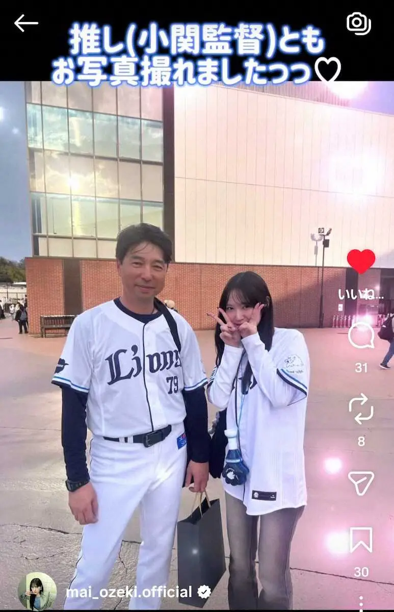 元カントリー・ガールズの小関舞が西武の2軍戦を生観戦 父は小関竜也2軍監督「推しと写真撮れました」 - スポニチ Sponichi Annex 芸能