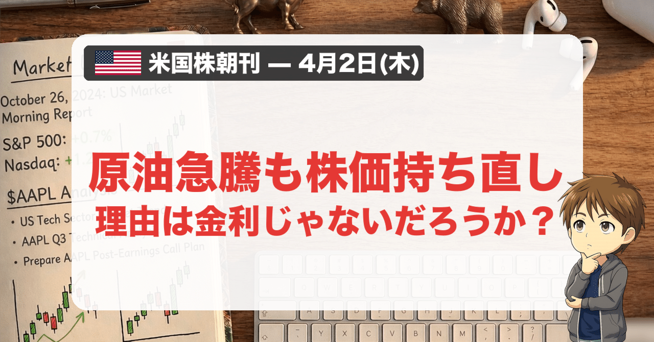 【米国株朝刊-4月2日】原油急騰も株価持ち直し。理由は金利じゃないだろうか?|やす ?? ベンチャーキャピタル