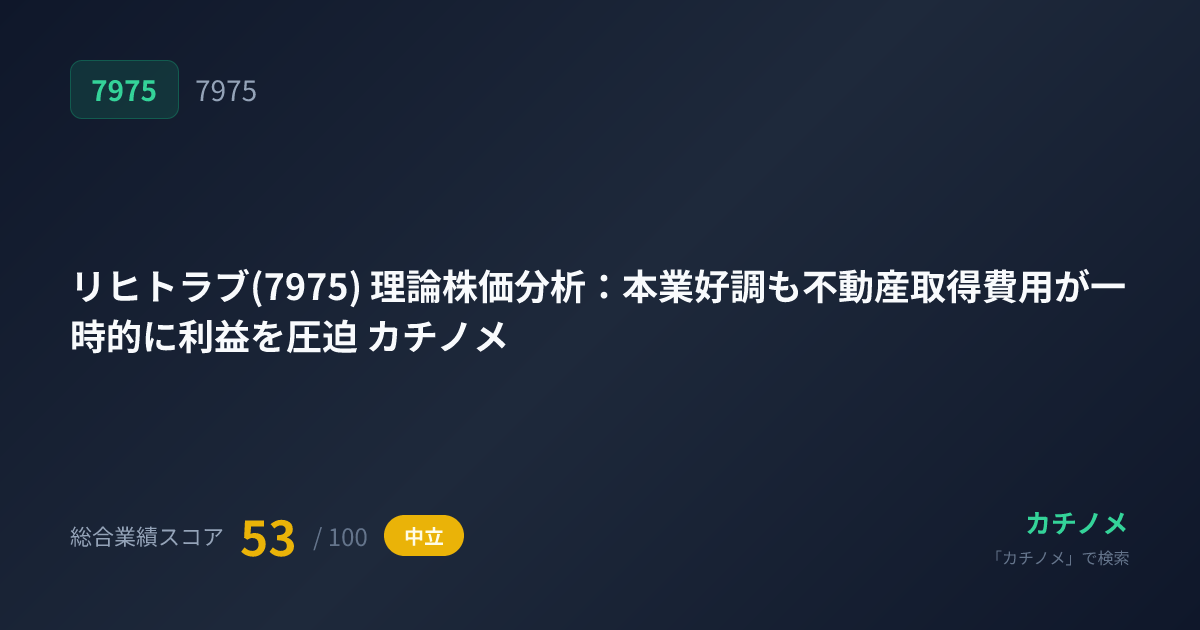 リヒトラブ(7975) 理論株価分析:本業好調も不動産取得費用が一時的に利益を圧迫 カチノメ | カチノメ