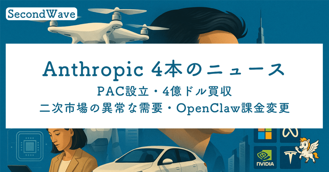 PAC設立・4億ドル買収・二次市場の異常な需要・OpenClaw課金変更——Anthropicを4本のニュースで読む|SecondWave|米国株・テックトレンド