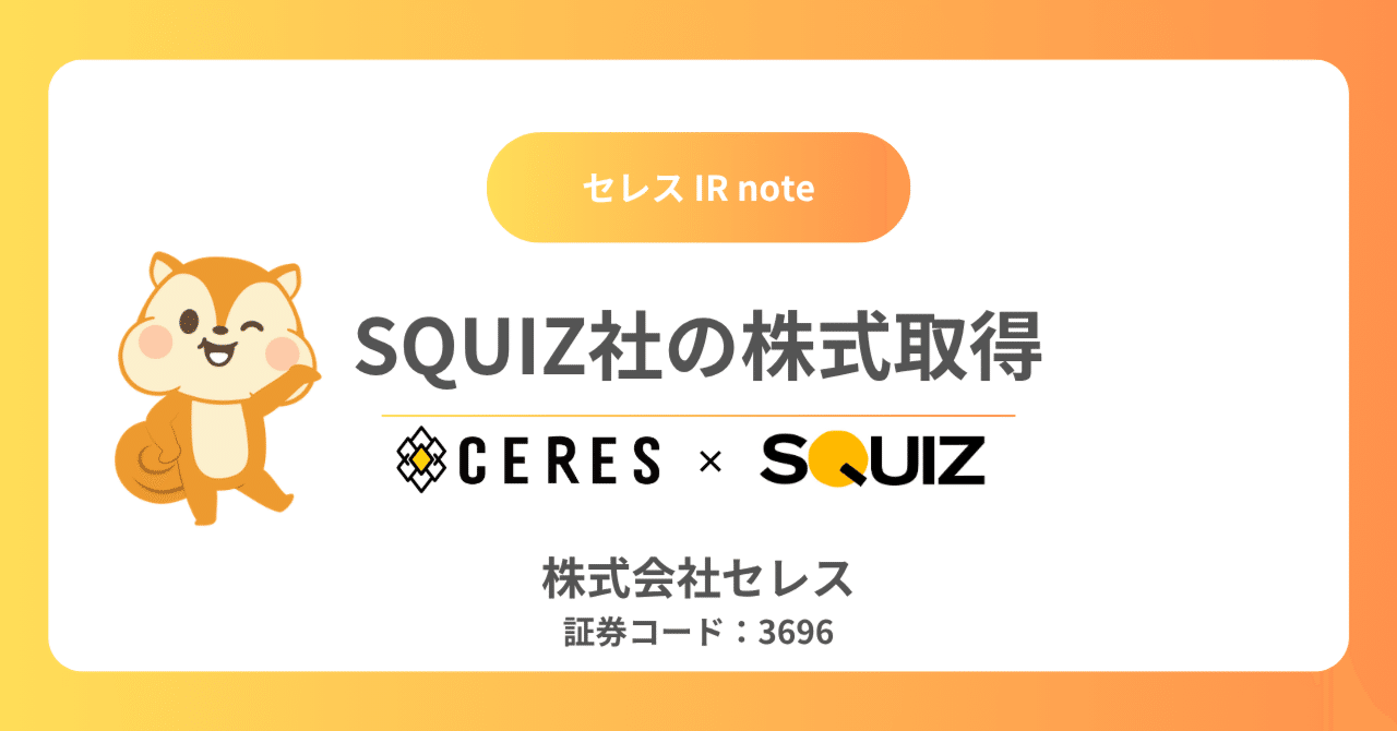 【IR note更新✨】 4月1日に発表したSQUIZ社のグループインについて記事にしています🤝🌟 ぜひご覧ください!😌 株式会社セレス IR note.com/fair_ferret326…