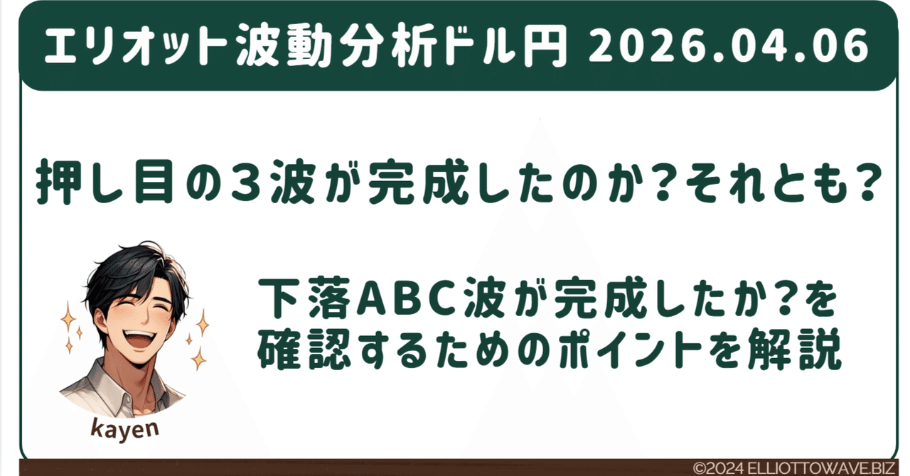 ドル円 エリオット波動分析 2026年4月6 日「押し目の3波が完成したのか?それとも?」|kayen