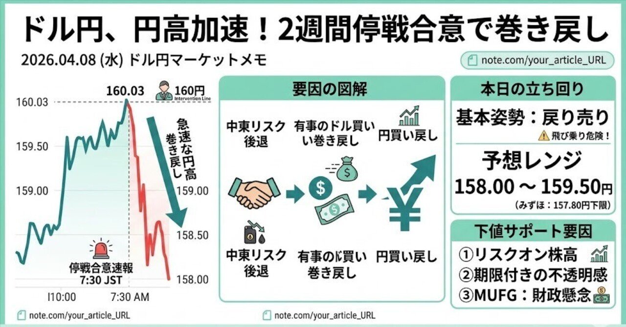 ドル円、「2週間停戦合意」で円高加速|有事のドル買いが一気に巻き戻される|佐伯 百