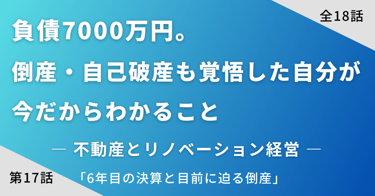 【第17話】6年目の決算と目前に迫る倒産|負債7000万円。倒産・自己破産も覚悟した自分が今だからわかること|さとう|不動産とリノベーション。ときどき馬主