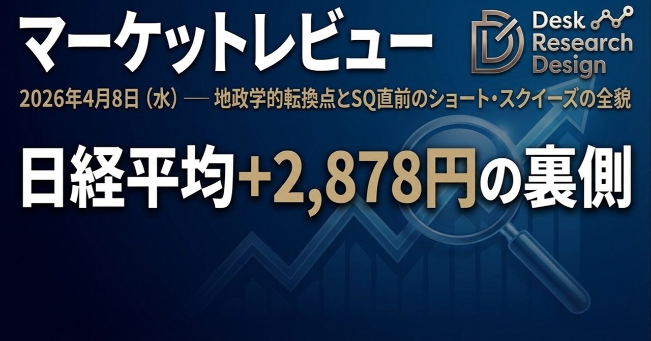【2026/4/8】マーケットレビュー:「日経平均+2878円急騰!!の裏側」|Desk Research Design